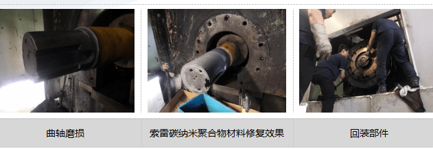 之前該高速沖床也出現過曲軸磨損問題,但是磨損沒有這么嚴重,企業是用現場補焊打磨的方法修復的。此次拆卸后發現曲軸磨損非常嚴重且磨損不均勻,傳統修復方法無法有效解決該問題。在這種情況下,企業選擇了索雷碳納米聚合物材料進行修復,該材料是由航空級樹脂、納米無機材料和高性能碳材料、纖維等先進材料通過聚合工藝生成的一種高科技納米新型材料,具有粘結強度高、綜合力學性能好、抗腐蝕、易于成型、可加工等優勢。并且憑借材料良好的性能及針對性的修復工藝可以做到修復表面與軸承內達到原始的配合面,同時恢復軸原始設計的過盈尺寸,因此可以保證更好的受力,在軸承潤滑保養得當、軸承不出現燒蝕的情況下,其使用壽命可達到甚至超過新部件的使用壽命。